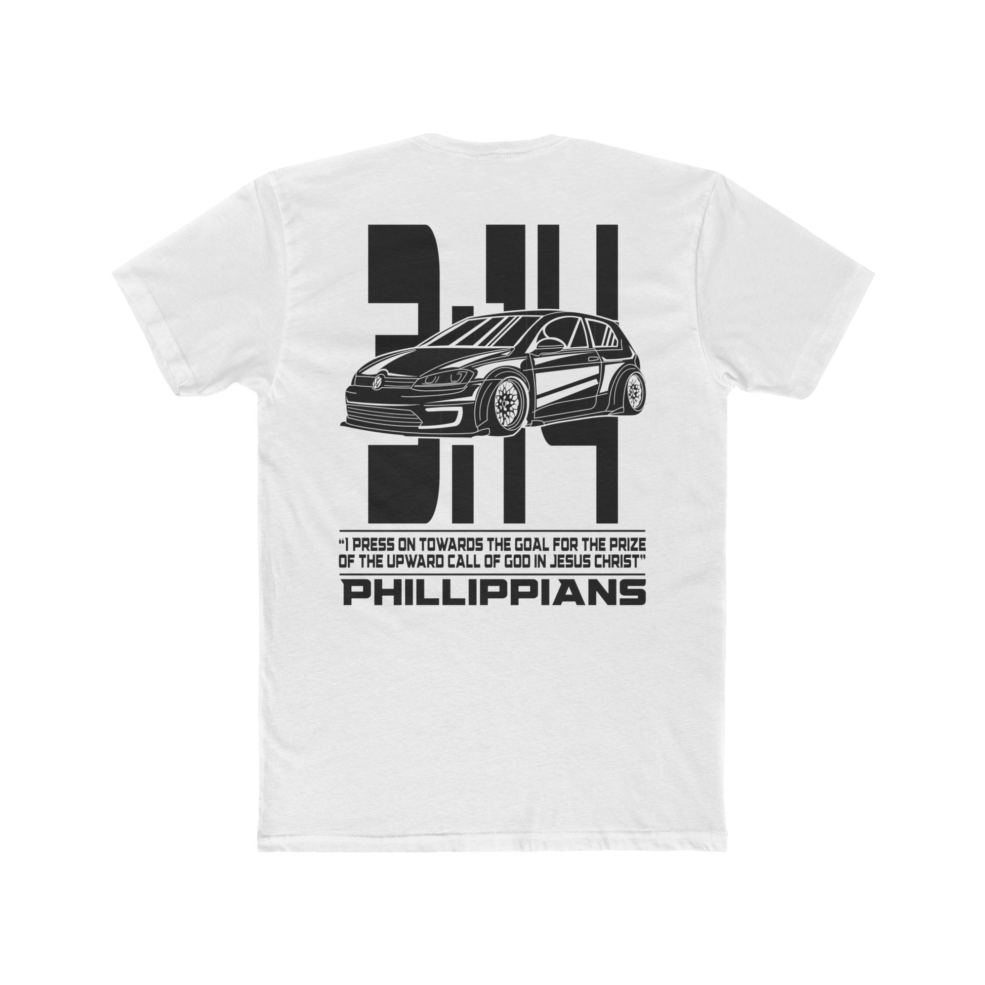 Introducing the "3:14 GTI Crewneck" a perfect blend of passion for cars and unwavering faith. This premium fitted short sleeve tee showcases a striking Mk7 Golf GTI design intertwined with an inspiring Bible verse, making it a statement piece for any car enthusiast and believer. Crafted for comfort and durability, this unisex cotton crew tee is made from 100% combed, ring-spun cotton, ensuring long-lasting softness. With its light fabric this tee is an excellent all-season choice, keeping you comfy and light throughout the day. The classic fit and crew neckline deliver a timeless look, perfect for accessorizing and versatile enough for streetwear and casual occasions.
